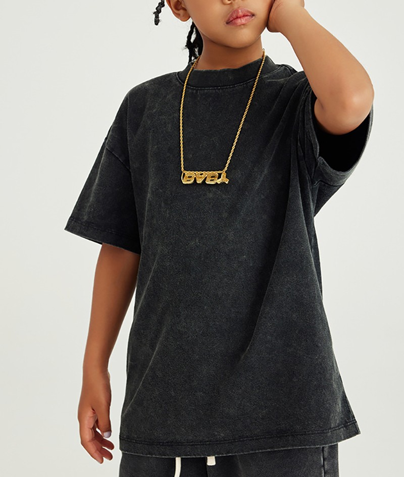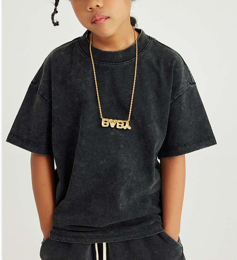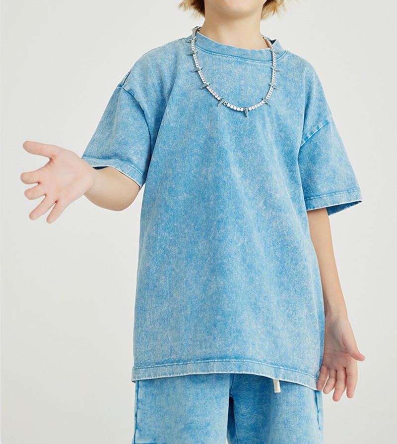 270G washed crew neck short sleeve batik clothes trendy brand children's t-shirt