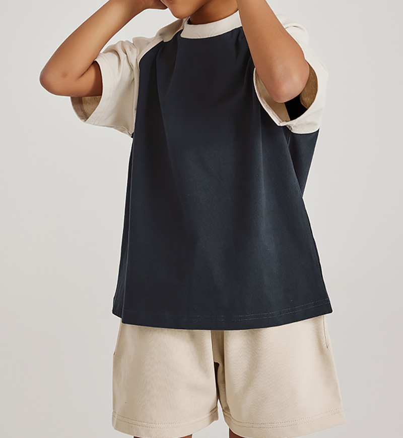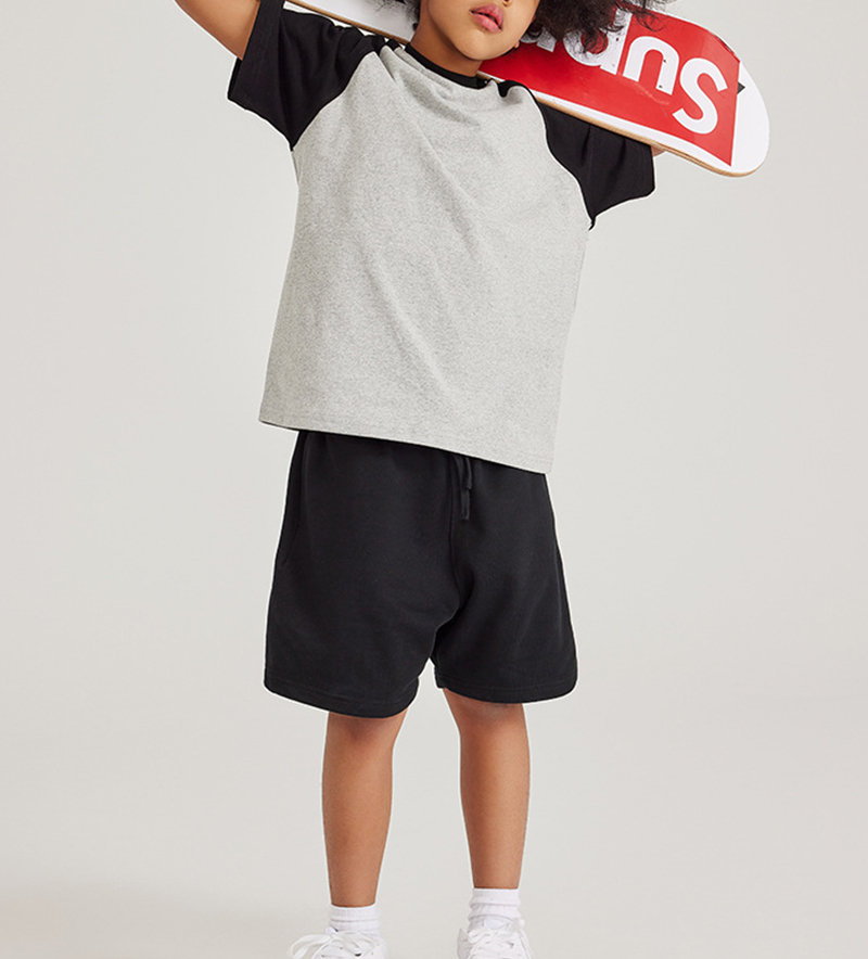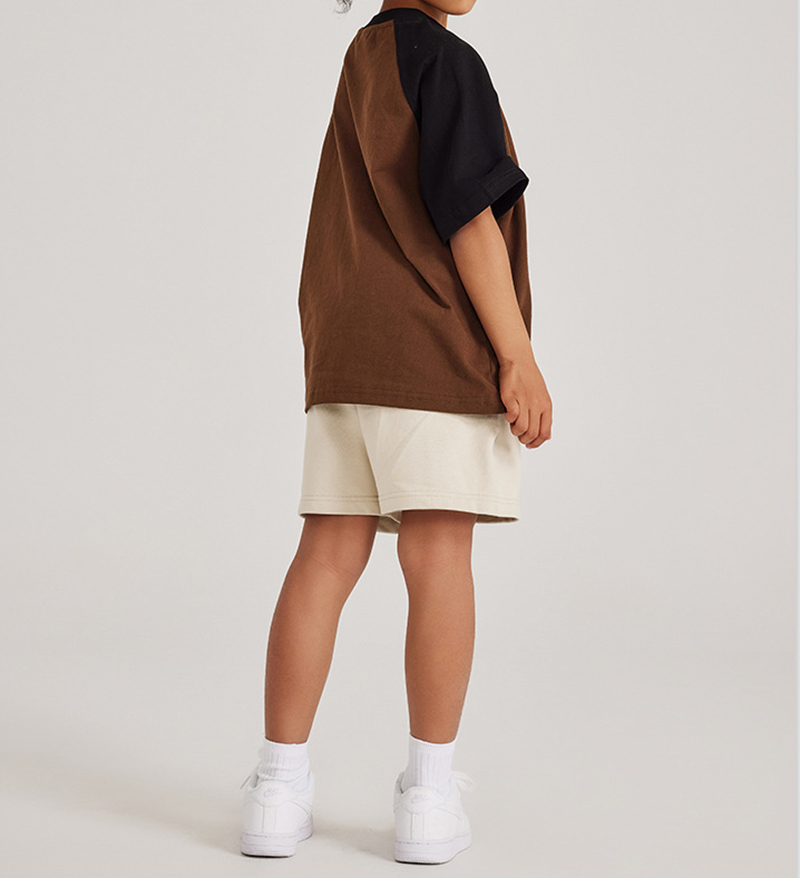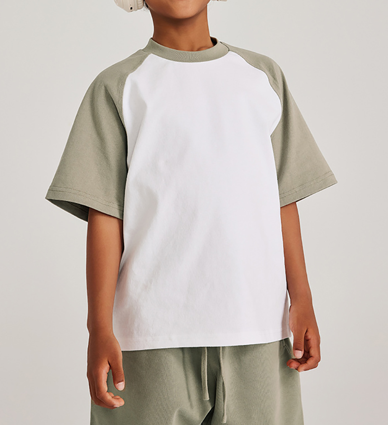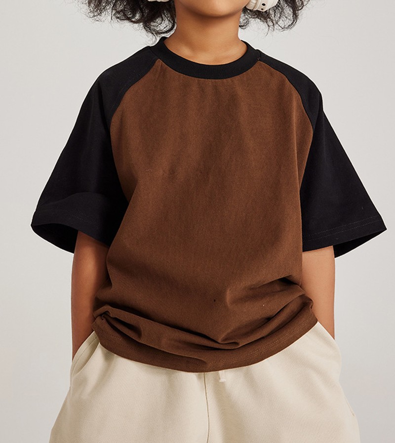 285G Contrasting Raglan Shoulder Kids Short Sleeve American Fashion Brand Cotton T-Shirt